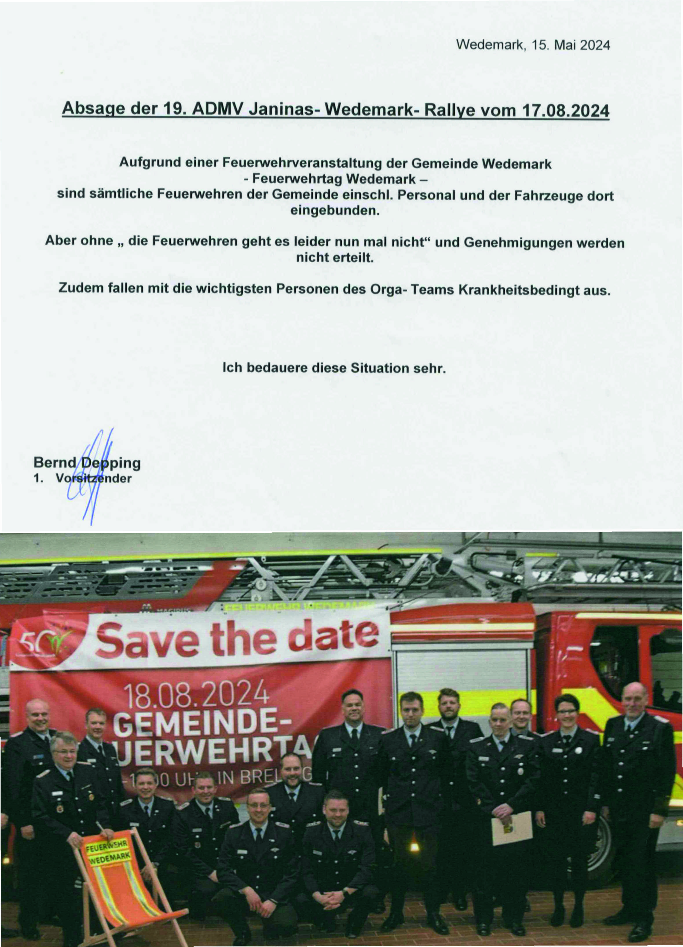 Was einst als regionale Motorsportveranstaltung begann, entwickelte sich nach 2013 zu einem besonderen Ereignis mit tiefem emotionalem Bezug. Seit jenem Jahr trägt die Rallye den Namen „Janinas Wedemark Rallye“, um an die unvergessene Fahrerin Janina Depping zu erinnern – eine der herausragenden Persönlichkeiten des deutschen Rallyesports.